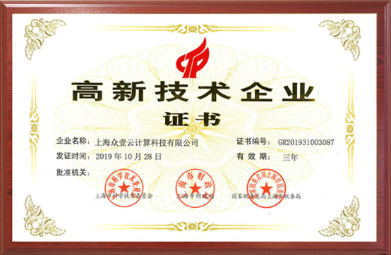 2019年对上海众壹云计算科技有限公司是里程碑式的一年,公司凭借专业的研发队伍,雄厚的技术实力,持续的创新能力,科学的企业管理,被顺利地评定为高新技术企业,由此上海众壹云计算科技有限公司也踏上了新的征程。